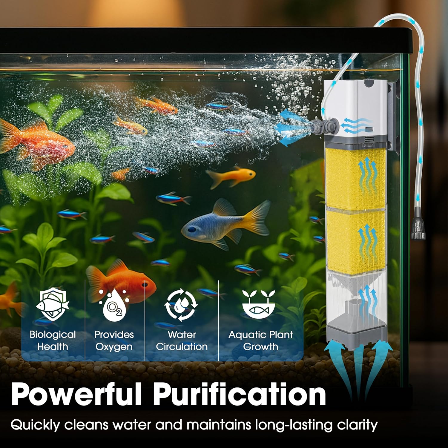 Aquarium Filter 25W for 40-80 Gallon, Internal System with Quiet 1200L/h Pump, Submersible Aquarium Filter for Turtles, 100 Gallon Fish Tank Filter, Filtro para Pecera, Clean Water Setup