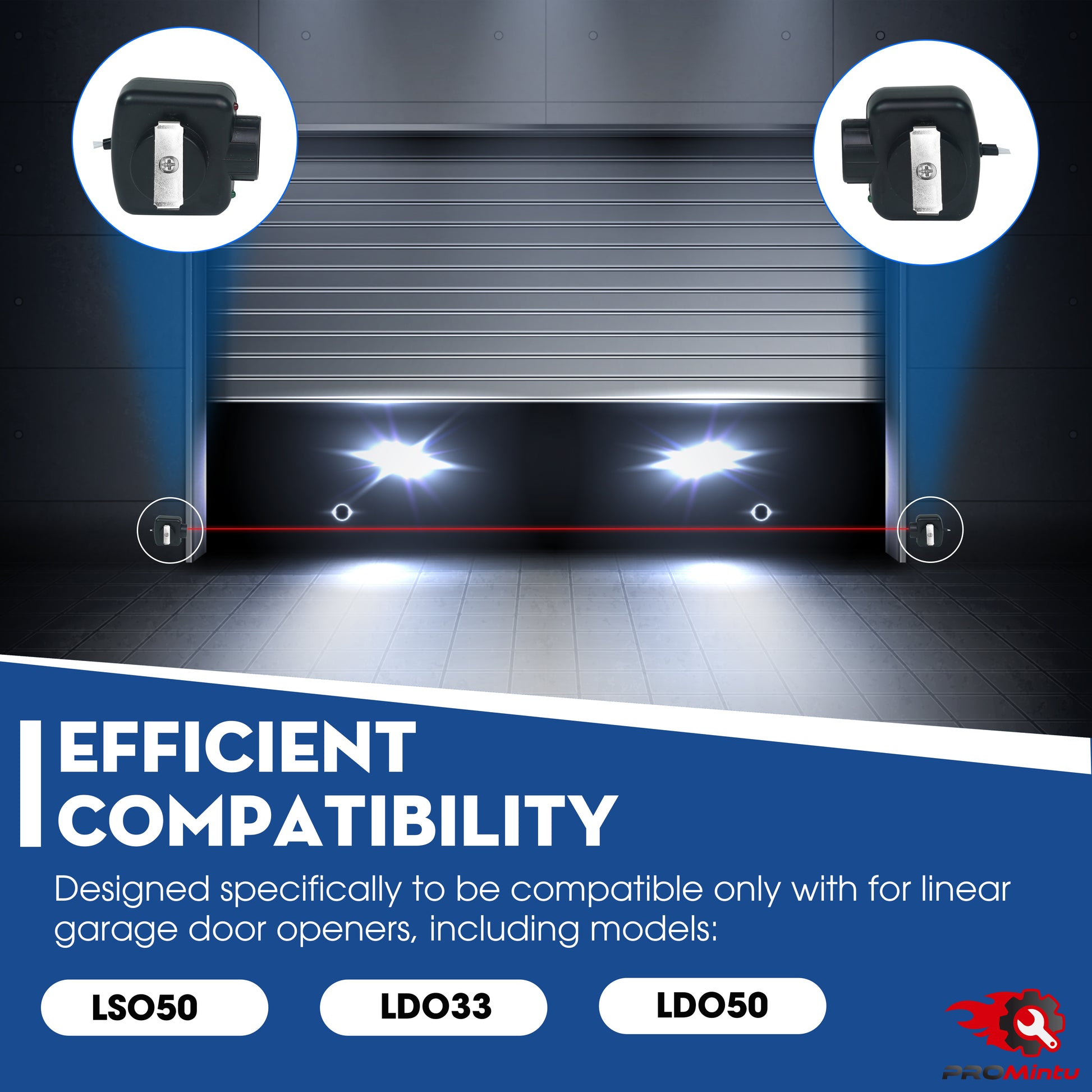 - Wide Compatibility: Designed for linear garage door opener parts, these garage door sensor replacement kits are compatible with Linear models such as LSO50, LDO33, and LDO50. Whether you need overhead door sensor replacement, garage door photo eye sensor, or garage door safety sensor beam eyes, these sensors are the perfect fit for your garage.
