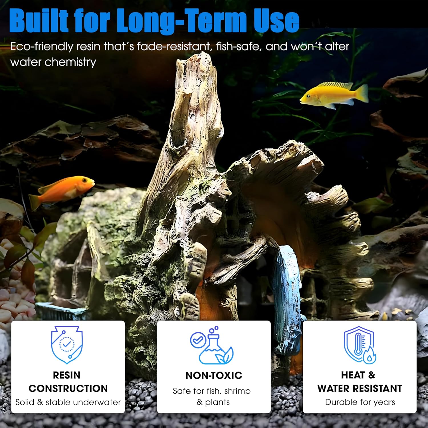 Elevate your aquatic setup with premium fish tank decorations designed to enhance both beauty and function. Crafted from durable, non-toxic resin, these unique aquarium decor pieces—featuring a rustic tree house and rugged tire sculpture—add personality to any aquatic environment. Ideal for betta fish tank accessories, they create natural shelters that promote healthy behavior in fish.